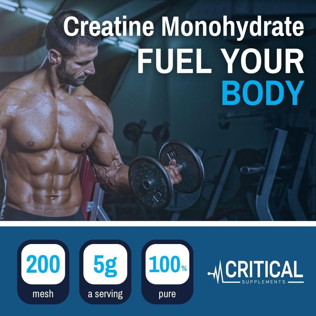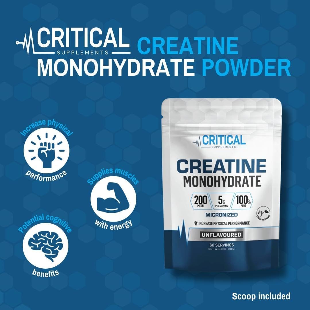 Micronized Pure Creatine Powder to Support Muscle Growth for Men & Women – Vegan Workout Supplement – Unflavoured, Critical Supplements